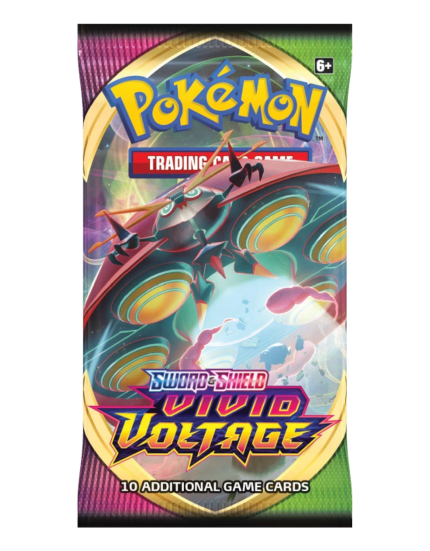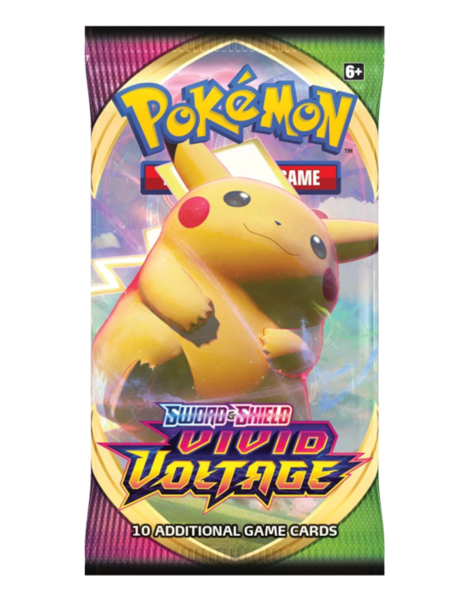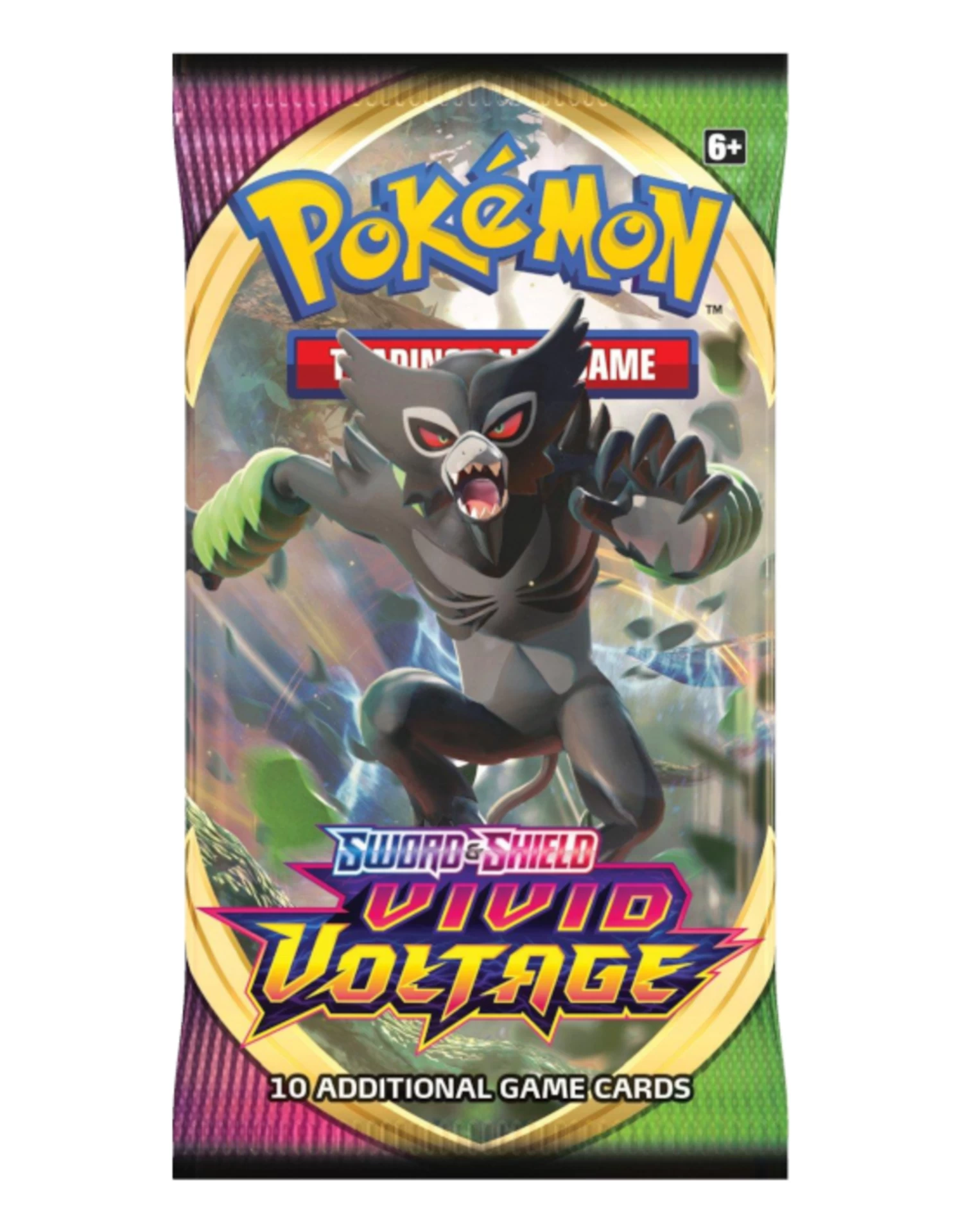 Discover new brilliance and maximum power in the Pokémon TCG: Sword & Shield—Vivid Voltage expansion as more Pokémon V appear, including the newly discovered Mythical Pokémon Zarude! Unique new Amazing Pokémon burst onto the scene with a rainbow splash, alongside more Pokémon VMAX…including the splendor, the majesty, the delightful round wonder that is Gigantamax Pikachu! Put a little color and a lot of spark into your deck or collection with the Sword & Shield—Vivid Voltage expansion!