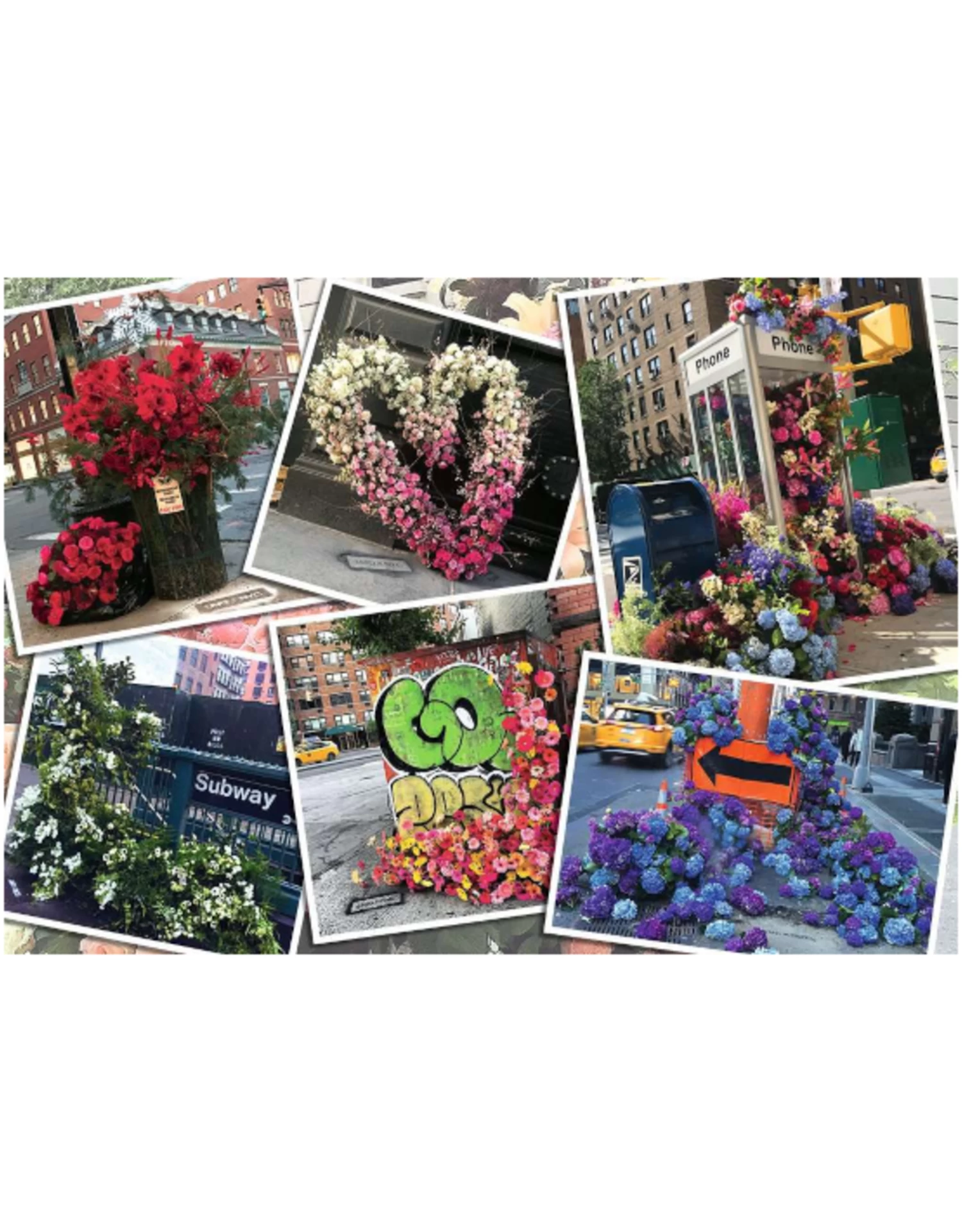What began in 2016 as an experiment by a floral design company looking to reconnect to their craft has become a beautiful shared experience in a city of over 8 million! Lewis Miller Design’s (LMD) Flower Flash has transformed some of New York City’s most unsightly scenes with stunning floral flourishes. From a giant heart brimming with pink peonies to a display of blue hydrangeas spilling over a sidewalk sign. You’re sure to love the joyful experience of completing this fun, uplifting puzzle!