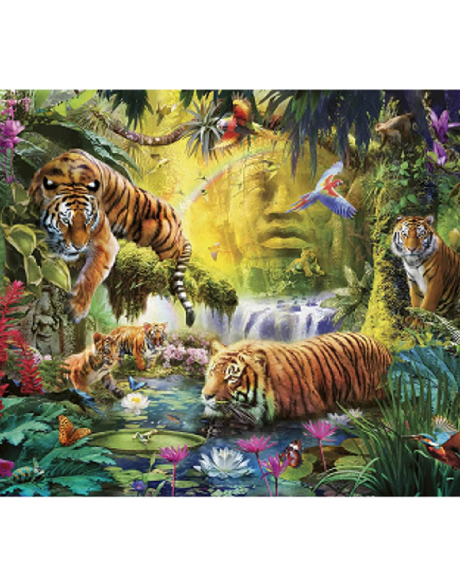 With a wide range of images and designs to choose from, including favorite characters, adorable animals, fantasy images, landscapes, monuments, and more, we’ve got the perfect puzzle for every puzzler. Assemble the high-quality pieces to reveal a pirde of tigers relaxing by a tranquil waterfall. Ravensburger 1500 piece puzzles are create a challenging and satisfying experience from our strategic image selection to our unmatchable quality.