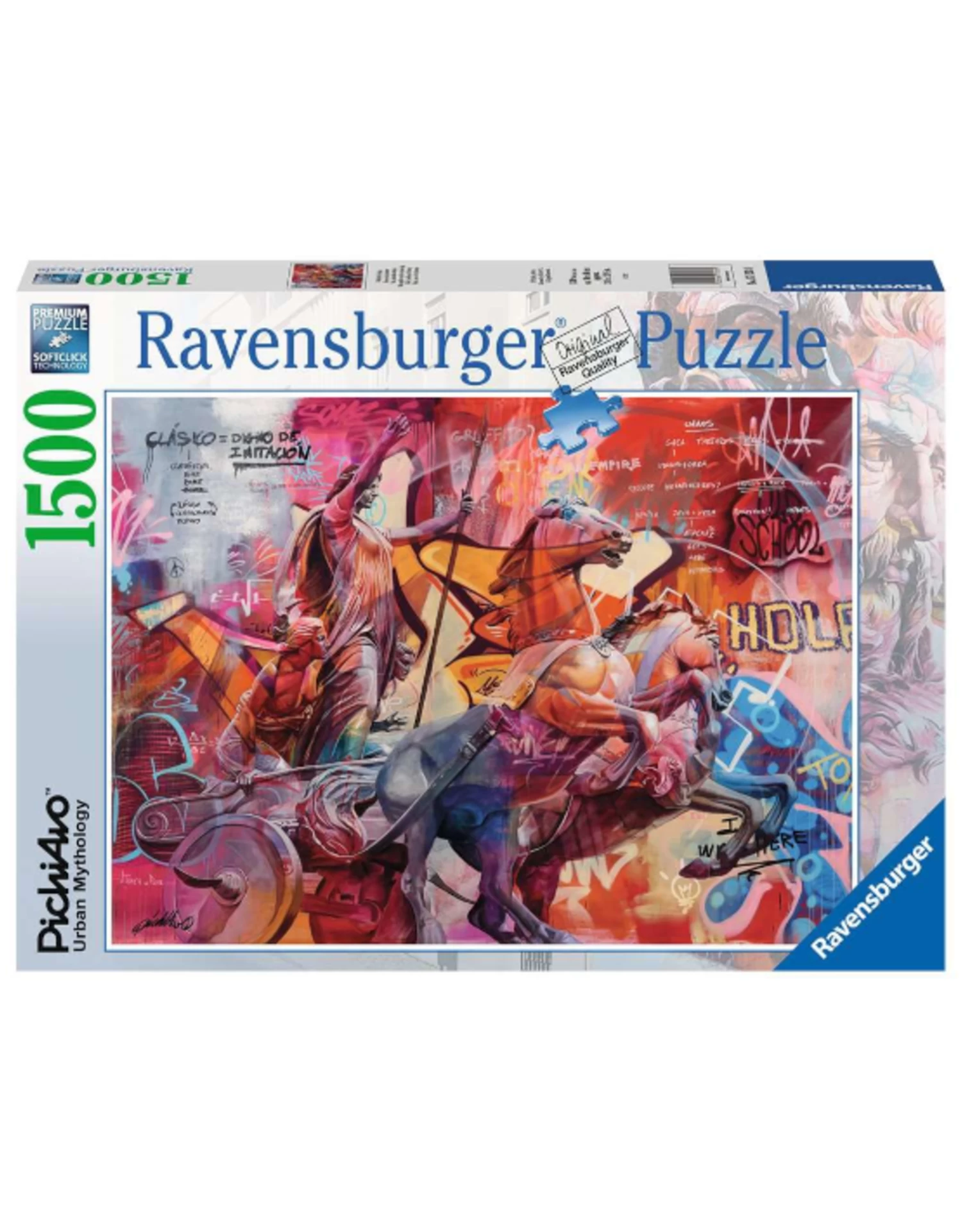 Race to a rewarding puzzle finish! Nike is the Greek goddess of victory, speed and strength, worshipped for her winning ways. Appointed Zeus’ chief charioteer at the start of the Titan War, Nike and her siblings Zelos (Rivalry), Kratos (Strength) and Bia (Force) became sentinels of Zeus’ throne. The talented street-artist duo PichiAvo overlays the rawness of explosively colorful graffiti with the sheer image of sleek, classic sculpture, allowing the grittiness of life to penetrate the ideal.