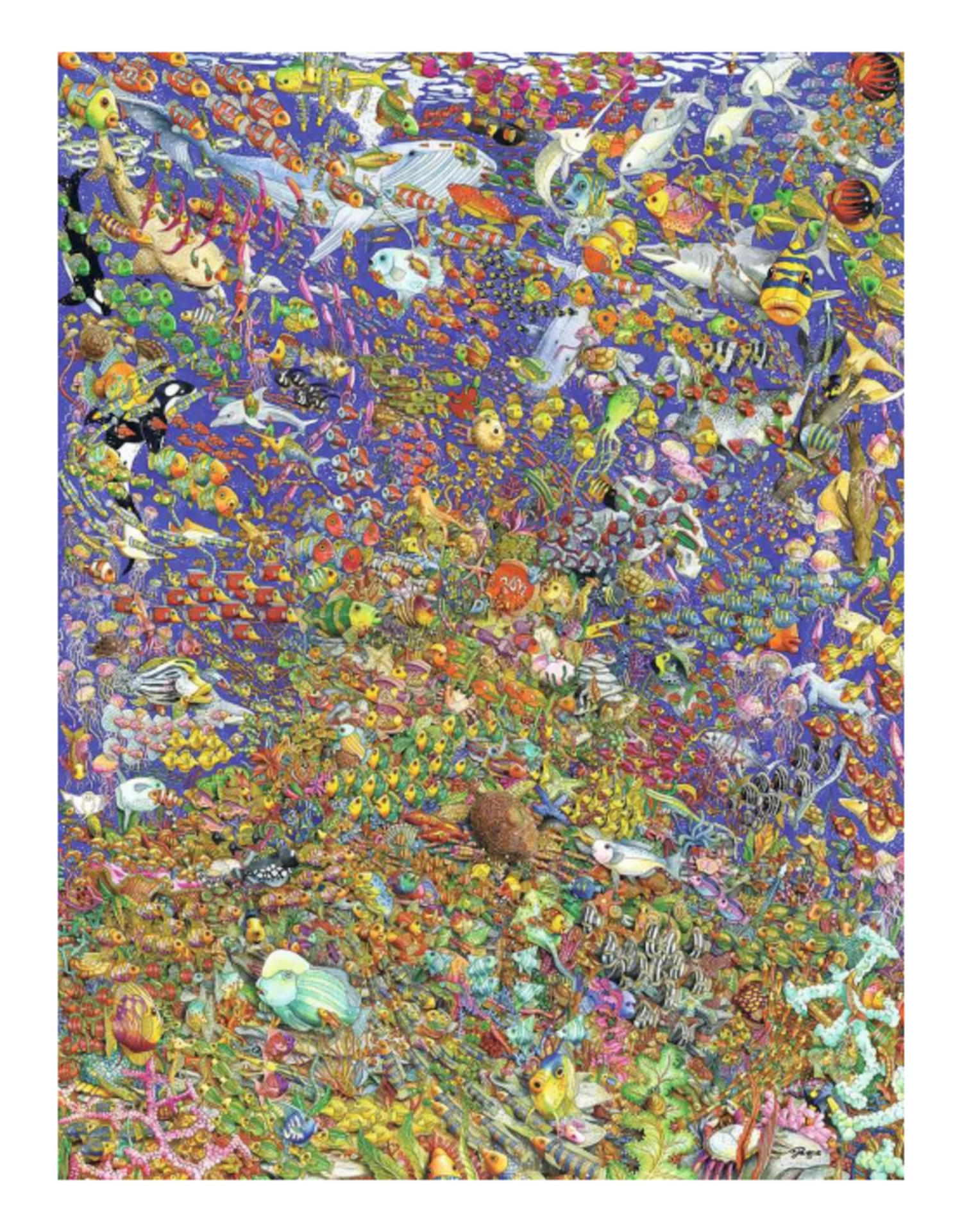 Puzzle away the stress of the day with this stunning original work of art, hand-painted by children’s book illustrator Adam Parsons! In biology, any group of fish that stay together for social reasons are shoaling. Adam shares, “I wanted to paint something that a viewer’s eyes could dance around as they enjoyed the movement, the characters, and the colors. Shoal draws you in, as it asks nothing from you other than to marvel at the vitality of nature.” Gather your shoal, and happy puzzling!
