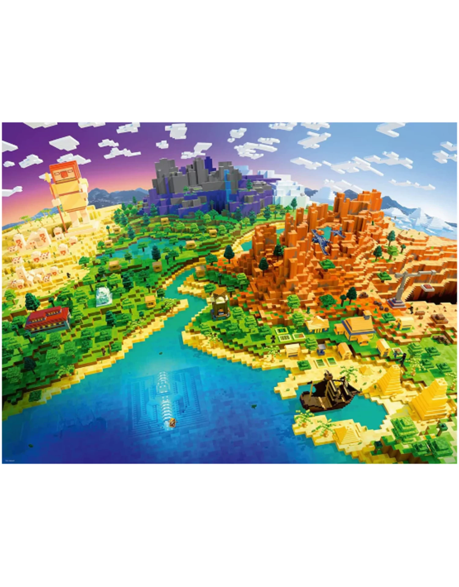 Being square is totally cool in Minecraft! It’s not just a game, it’s a creative outlet with limitless possibilities. As skills improve, first build a starter home then palaces and Pantheons! Our exclusive puzzle portrays the type of massive scale and variety of biomes players can imagine and create. Build burrows, construct caverns, forge forests, make mountains, produce pyramids, and shape ships. Piece by piece the Minecraft world, and this fun puzzle, are yours for the making! This 1,500-piece jigsaw puzzle combines captivating imagery with clean-cut pieces and Ravensburger’s perfect interlocking fit for a most pleasurable puzzling experience. Our puzzles are crafted with an exclusive, extra-thick cardboard backing along with our superior, linen-structured paper, so the printed image is vibrant, crisp, and glare-free. Create memorable moments with Ravensburger premium puzzles