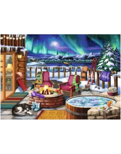 What’s the first thing you’d like to do in this scene? Kick back with your feet warmed by the fire as you dip toasty bread into that delectable fondue? Or would you sip a hot toddy and dip yourself into that steaming hot tub to relax those tired muscles after a day of carving turns through fresh powder? With the magnificence of the brilliant aurora borealis overhead, every choice is a winner!