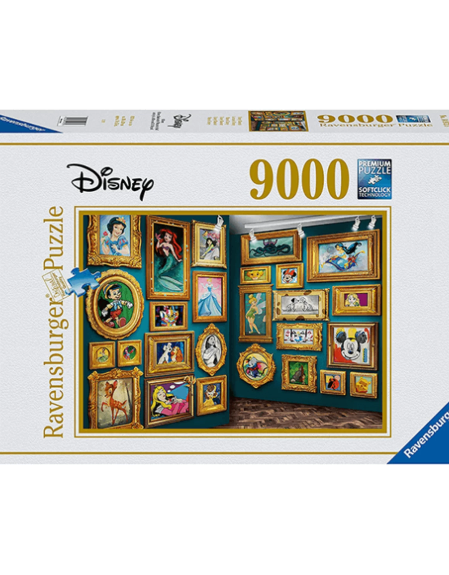 There are so many well-known characters to discover and enjoy. But look more closely and you’ll see many different art styles. Bambi is shown in the classic movie style of yesteryear, Marie from The Aristocats is captured in a modern, colourful and contemporary way, those cheeky Dalmatian pups are in black and white only (what else?) and Aurora is in comic-book style. There are over 25 different, beautifully framed, images to discover as you assemble this large slice of Disney art history! A fantastic project for Disney fans and a good gift for puzzle fans wanting something challenging and just that bit different. High quality 9000 piece cardboard jigsaw puzzle.