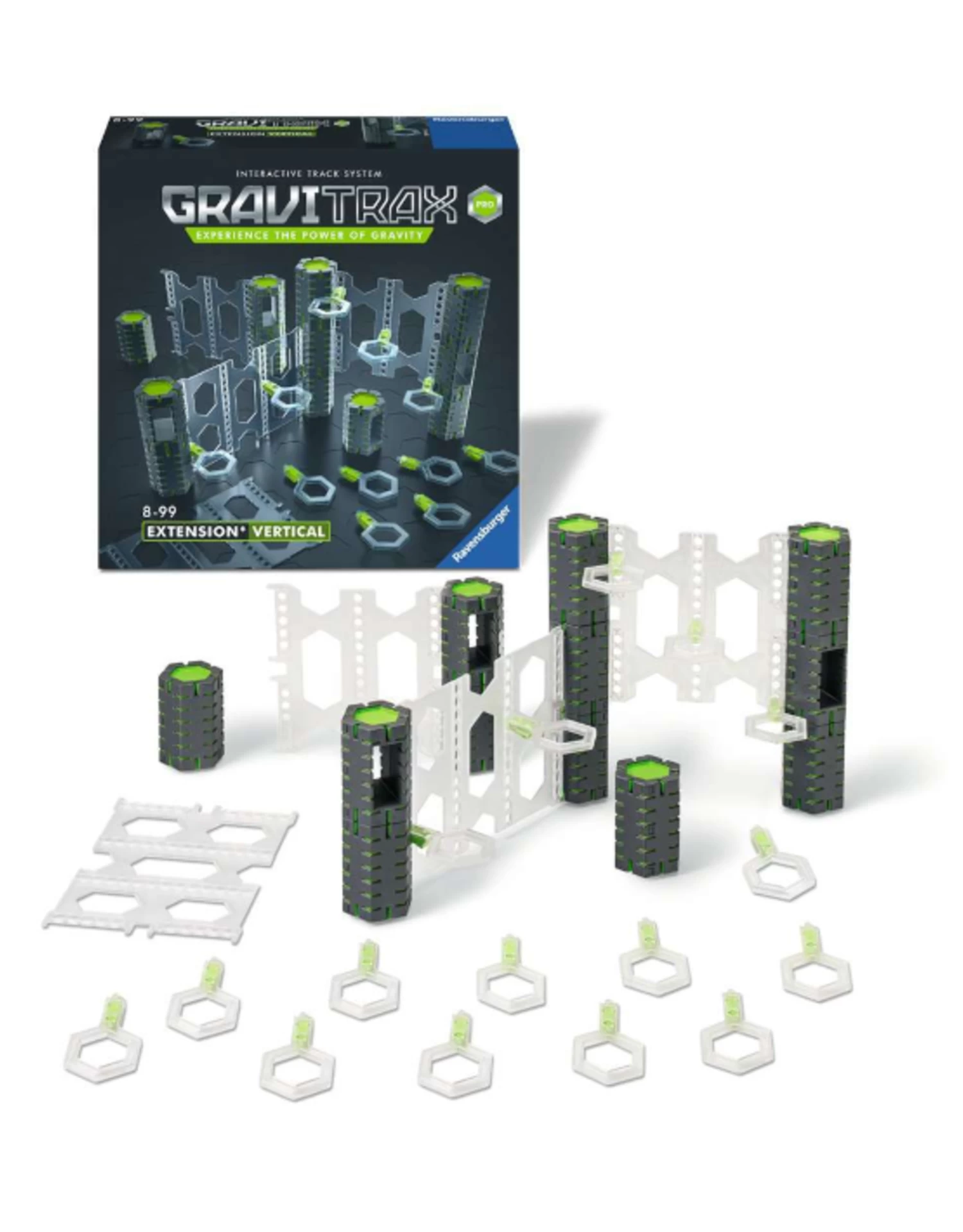 The GraviTrax PRO Vertical Expansion Set offers 33 additional elements to reach new heights with your track. Create dynamic marble runs with walls, pillars and balconies that take your tracks to new heights. Whether you create towering three-dimensional structures or suspended tracks, see how high and clever you can build. Combine with the GraviTrax Pro Starter Set and take your track to a new level. This set includes 8x Pillars, 4x Tunnel Pillars, 2x Walls Long, 3x Walls Medium, 16x balconies