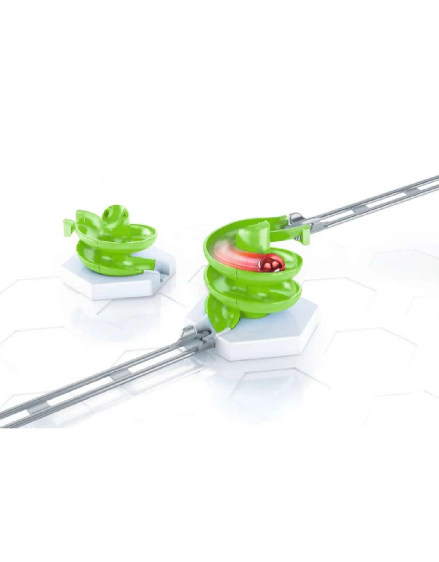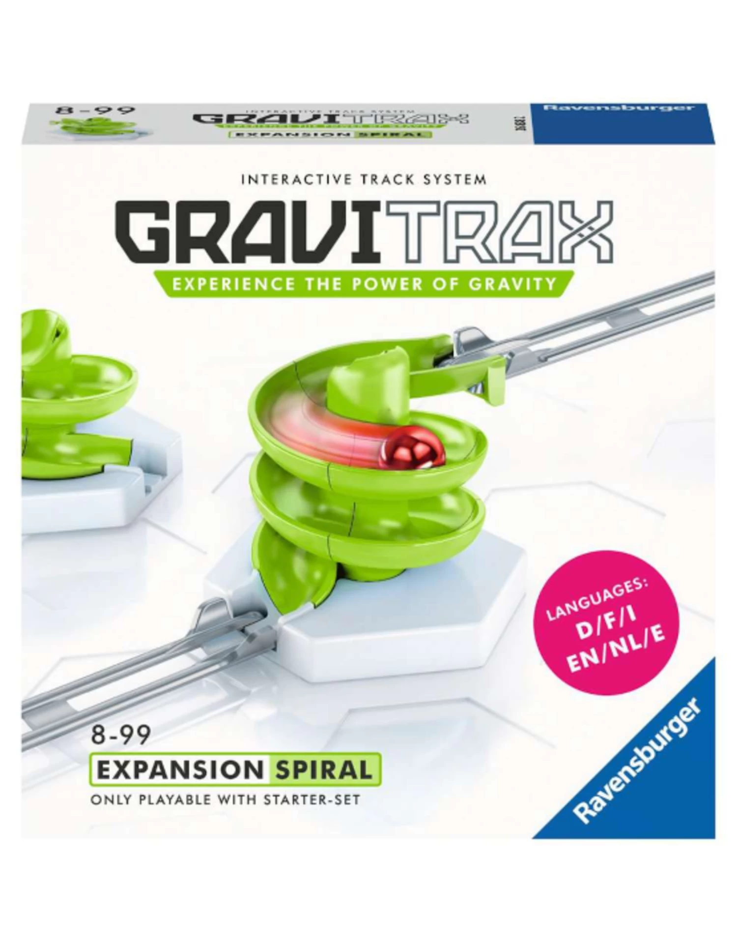 Experience the power of gravity! GraviTrax is the STEM track system from Ravensburger! Use your imagination to build superb tracks and set the gravity spheres rolling! Create the element of surprise! Propel the action! Let the ball spin round and round with the Spiral. With different height possibilities, you can configure the Spiral to take the marbles on a dizzying journey from one level to another.