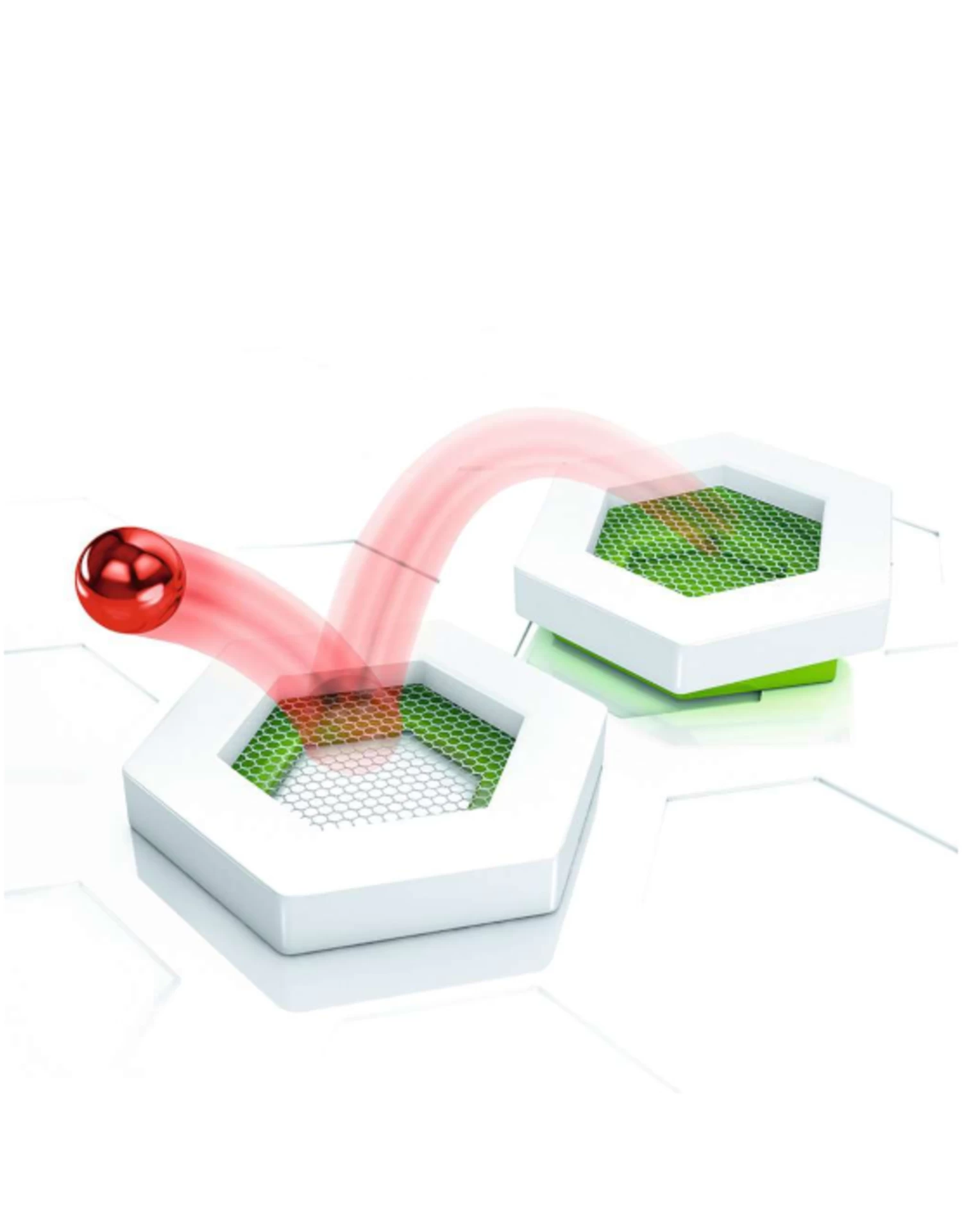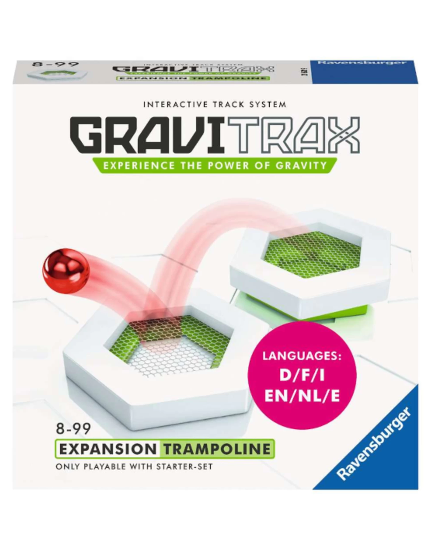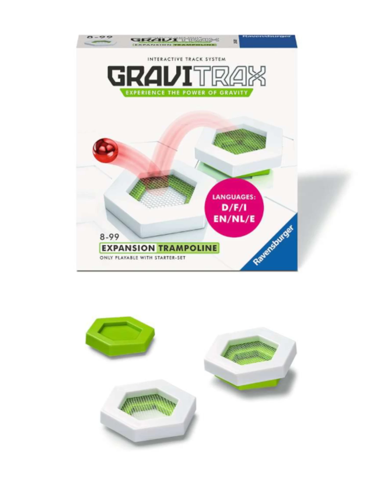 Change up the marble run experience from racing to bouncing with the Trampoline. With specially angled height tiles and springy trampoline tiles, the marble can now bounce its way to tracks waiting on the other side. Including 2 trampoline tiles and 2 angled height tiles, this accessory must be combined with the GraviTrax® Starter Set.