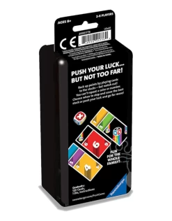 Push your luck…But not too far! Rack up points by playing cards to the stacks – but watch out! You can’t repeat a color or number. Choose when to stop and score the best stack or push your luck and go for more!