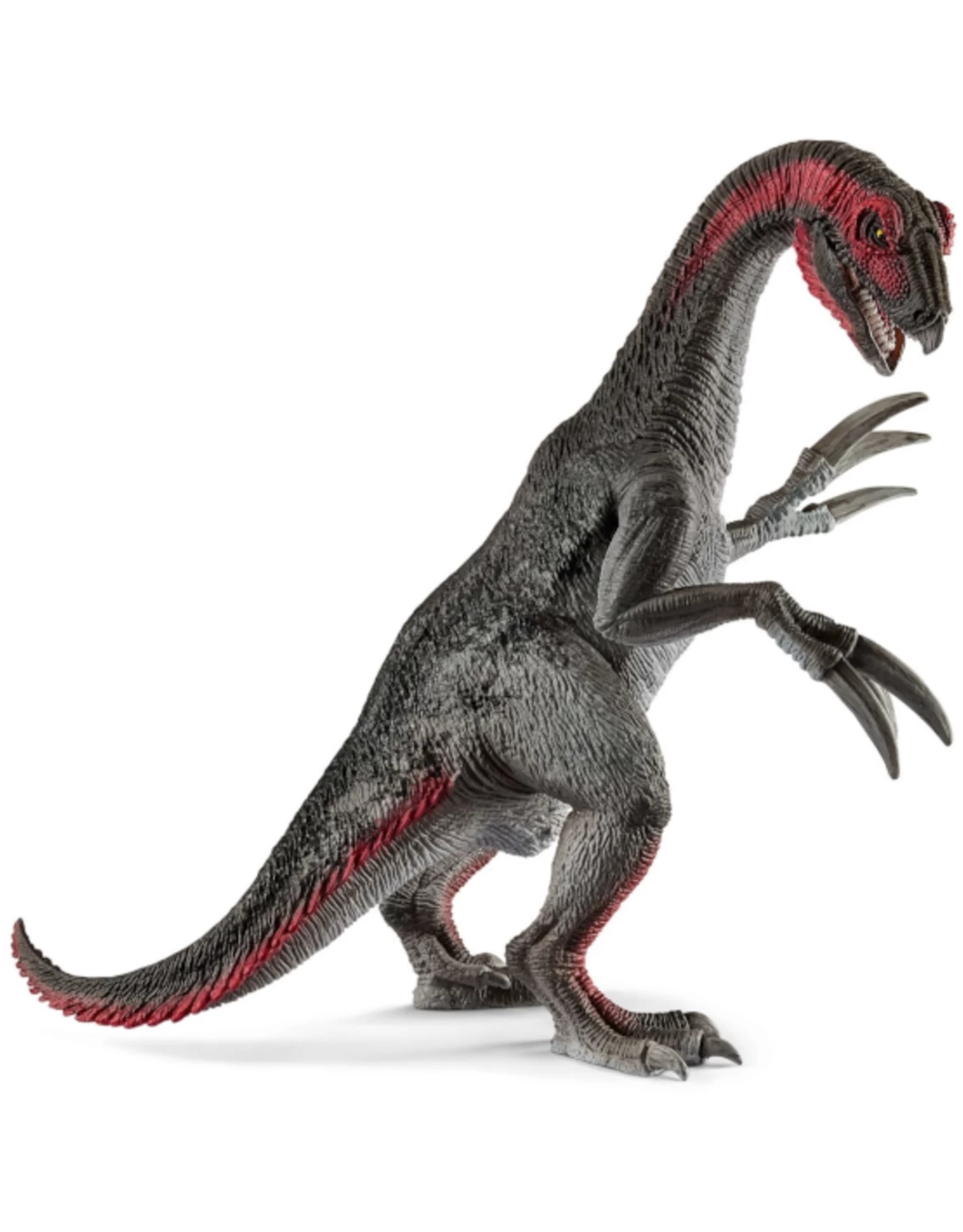 Of all animals that ever lived on earth, the Therizinosaurus probably had the longest claws. It used them to dig, grasp, pierce, and peel off bark. It lived towards the end of the dinosaur age, together with other herbivores such as the Kentrosaurus and Pentaceratops.