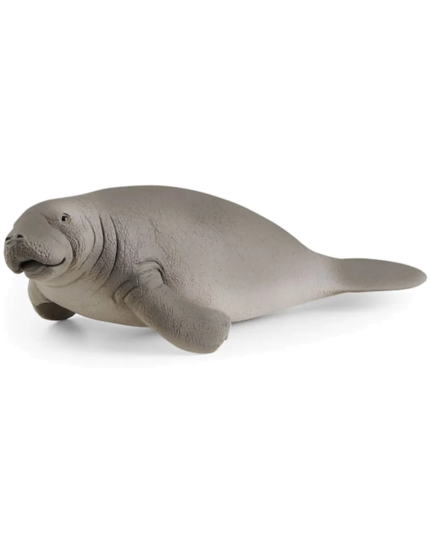 The Manatee from Schleich® WILD LIFE is a mammal that lives in tropical waters and feeds on seagrass, algae and other aquatic plants. Its closest relative is an elephant. Its front legs have evolved into fins over millions of years, while its hind legs have completely disappeared. The manatee’s tail is shaped like a paddle, whereas a dugong, which looks very similar, has a tail fluke that looks like a dolphin.