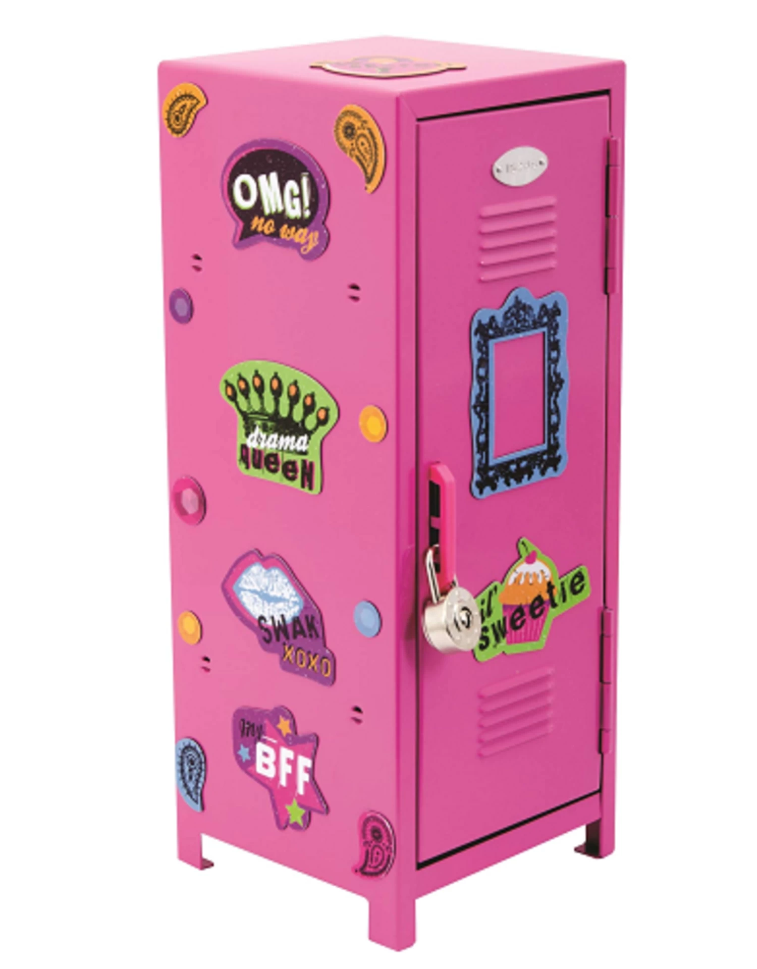 Keep your valuables safe with this fun themed locker! Make it your own with the included magnets or simply add your own! Comes with 2 keys, 1 lock, and 18 magnets.