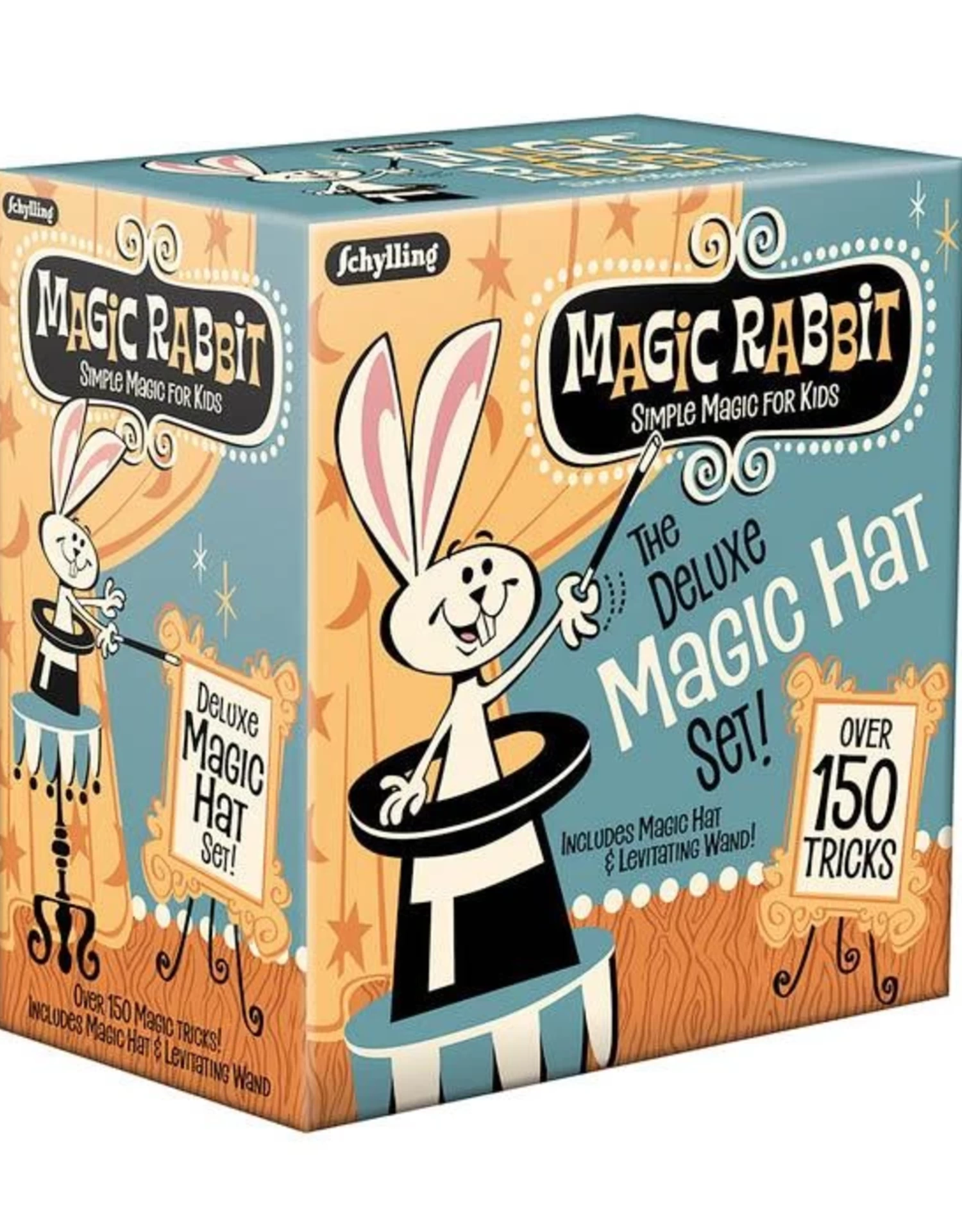 The Deluxe 150 Magic Hat Set includes a wearable Magic Hat and is packed full of many magician’s favorites, like Mystic Cards, Magic Dice, Magic Rope, Levitating Wand, Magic Cloth and much, much more.