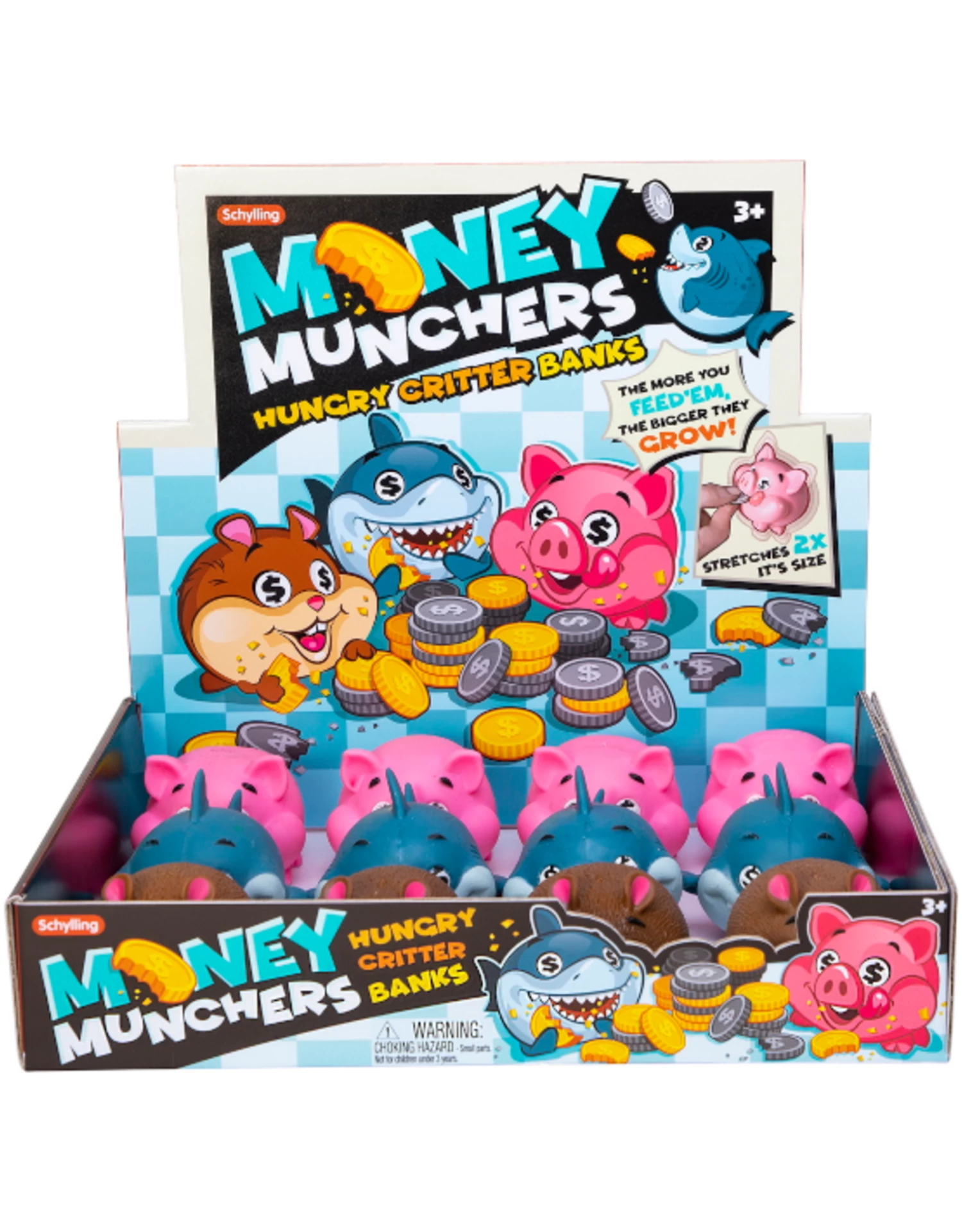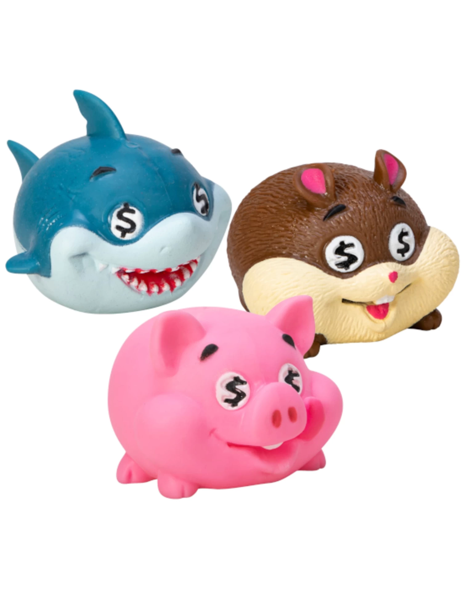 Money Munchers are sure to keep your loose change safe and saved! These cute little creatures have money on the mind and are ready for you to feed them any penny, nickel, or dime they can get. The more you feed them, the bigger they grow! Money Munchers can reach up to 2x their original size with their stretchy, squishable design. Meet Piggy Dinero, Loot Shark, and Cash Hamster who are hungry for money!