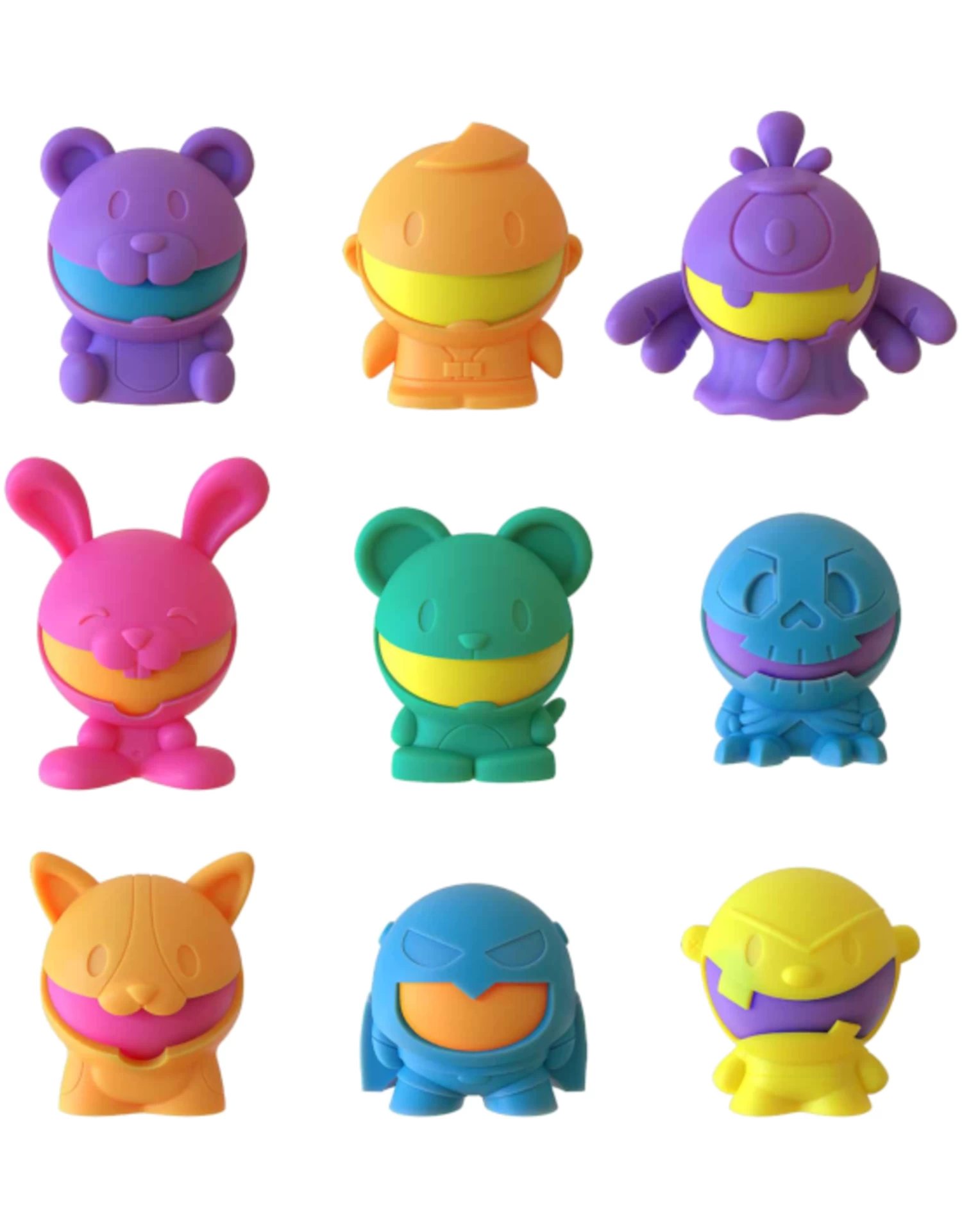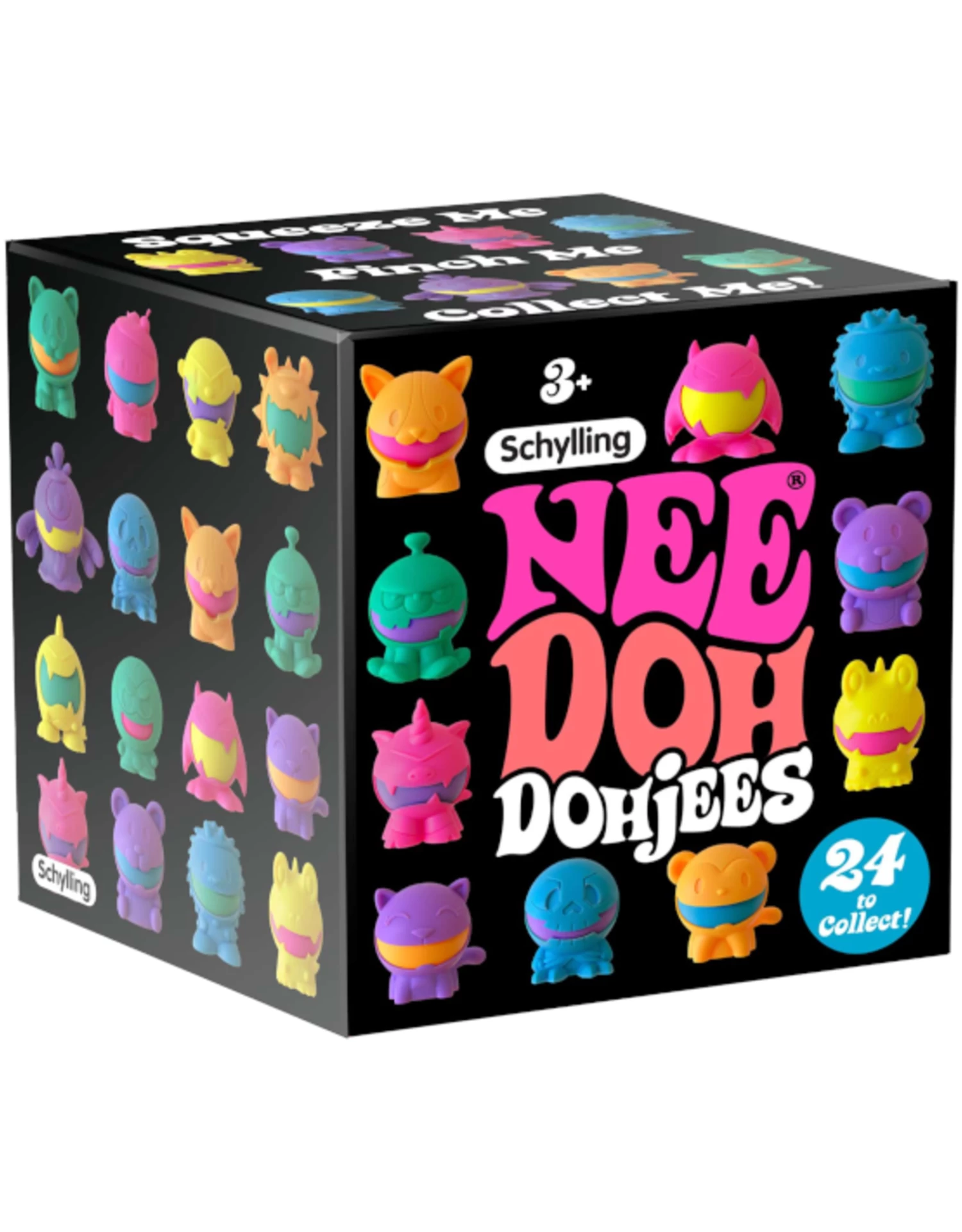Meet the new groovy glob crew! NeeDoh Dohjees are a lineup of little creatures that come with an irresistible squish. There is a whole world of Dohjees to explore with 24 to collect! Each Dohjee comes with a Teenie NeeDoh inside, just waiting to be squeezed, pulled, and mashed! Easily pop and swap your Teenie NeeDohs and create a whole new Dohjee to keep in your collection. Creatures include squishy monsters, cool cats, and so much more. Elevate your squish, and collect the entire Dohjee crew!