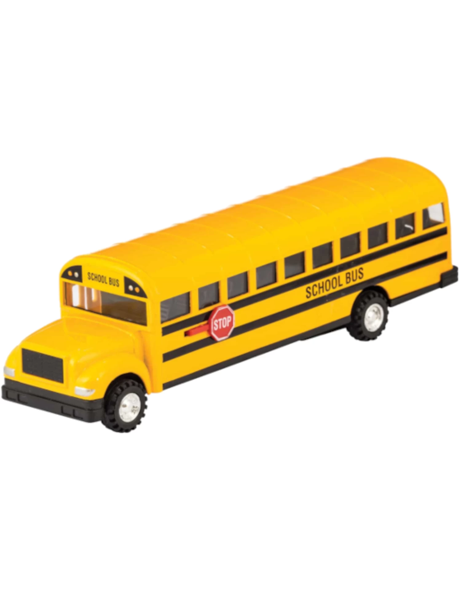 The Die Cast Pull Back School Bus comes with a working stop sign and swinging doors, this school bus features a die cast body and pull back motor.