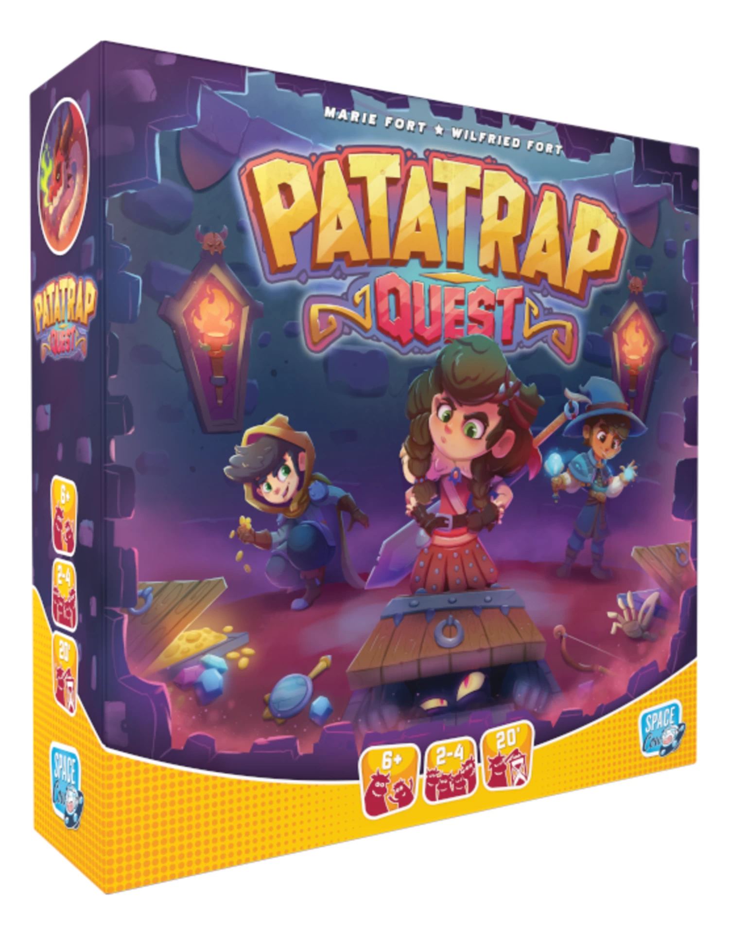 An evil creature has taken up residence on top of the 1000-Mirror Tower of Patatrap castle! Players role play adventurers on their way to explore a dungeon. Their objective: open the trapdoors to find the right gear (shields, swords, etc.) before fighting the Boss Monster. But be careful not to fall into a trap!