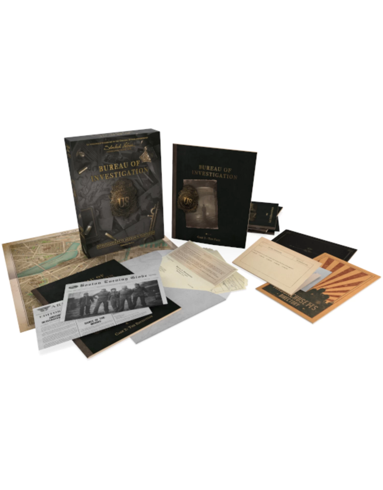 February 2022. Arkham. Bureau of Investigation briefing room. Welcome to the Bureau of Investigation, agents. Here are five more lovecraftian cases. Team up and follow the clues, read newspapers, analyze the scenes and, according to your instinct, investigate the suspects sneakily or question them face to face. Be careful out there, you’re heading to Arkham and that’s always strange! Grab your badge and go!