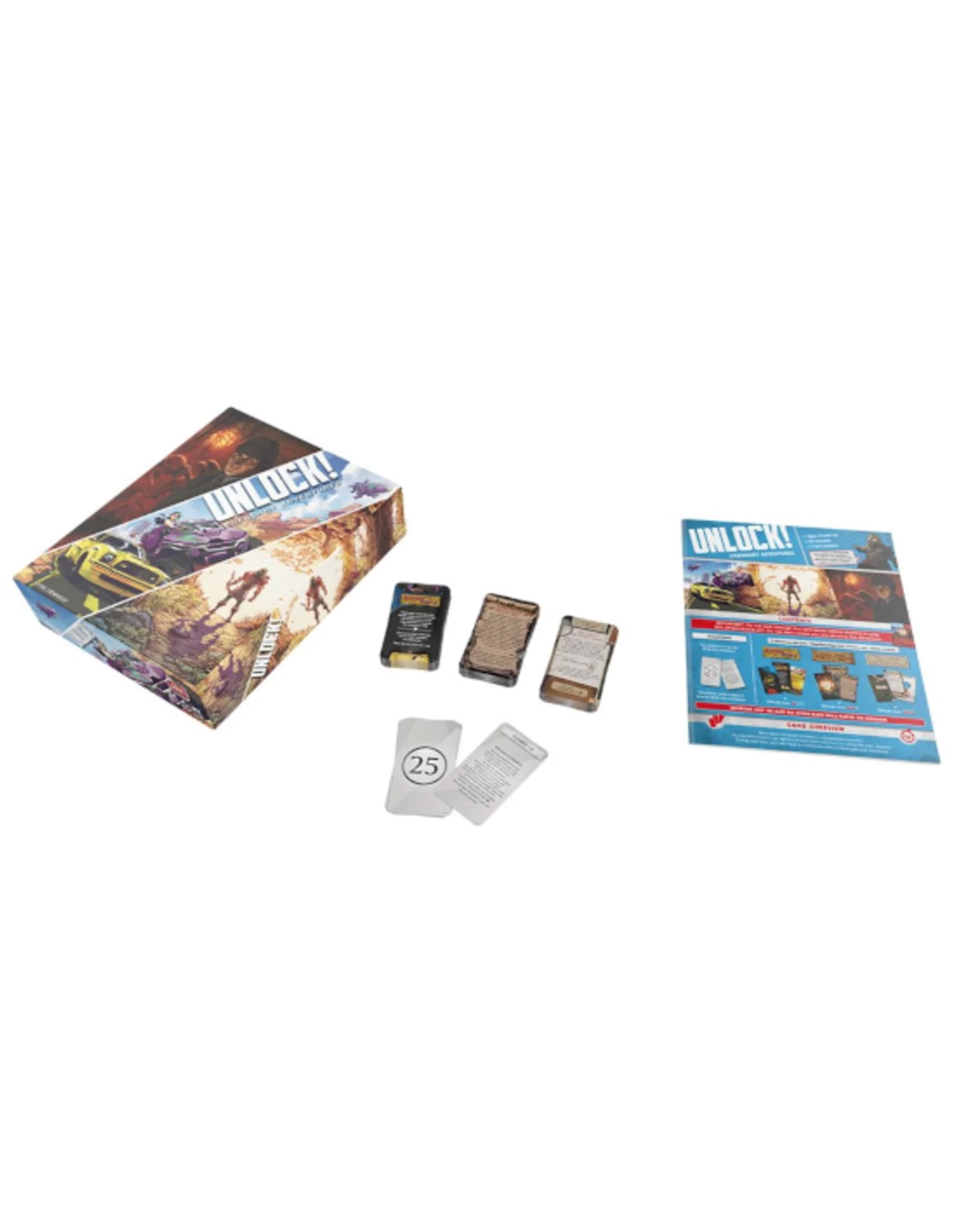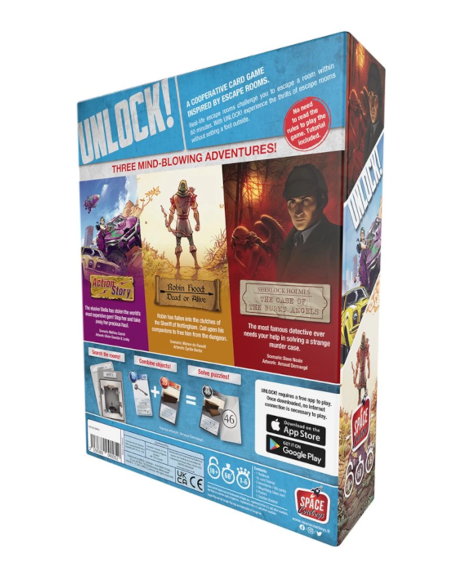 Unlock! is a cooperative card game inspired by escape rooms that uses a simple system which allows you to search scenes, combine objects, and solve riddles. Play Unlock! and embark on great adventures, while seated at a table using only cards and a companion app that can provide clues, check codes, monitor time remaining, etc. Can you crack the code and unlock the mystery?