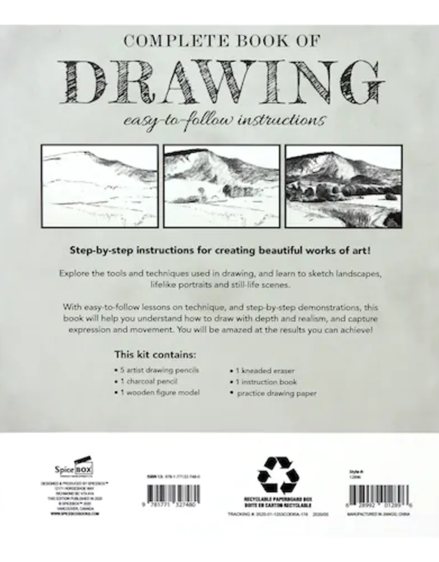 SpiceBox Complete Book Of Drawing Create beautiful works of art! Explore the tools and techniques used in drawing, and learn to sketch landscapes, lifelike portraits and still-life scenes. You will be amazed at the results you can achieve!