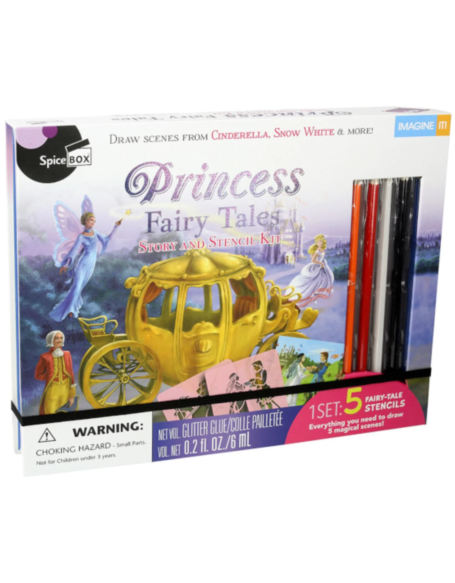 Trace, draw and color your own Princess tales! Enter the wonderful world of fairy tales and create your own enchanting works of art! Use the fun stencils and art supplies in this kit to create magical scenes from five classic tales.