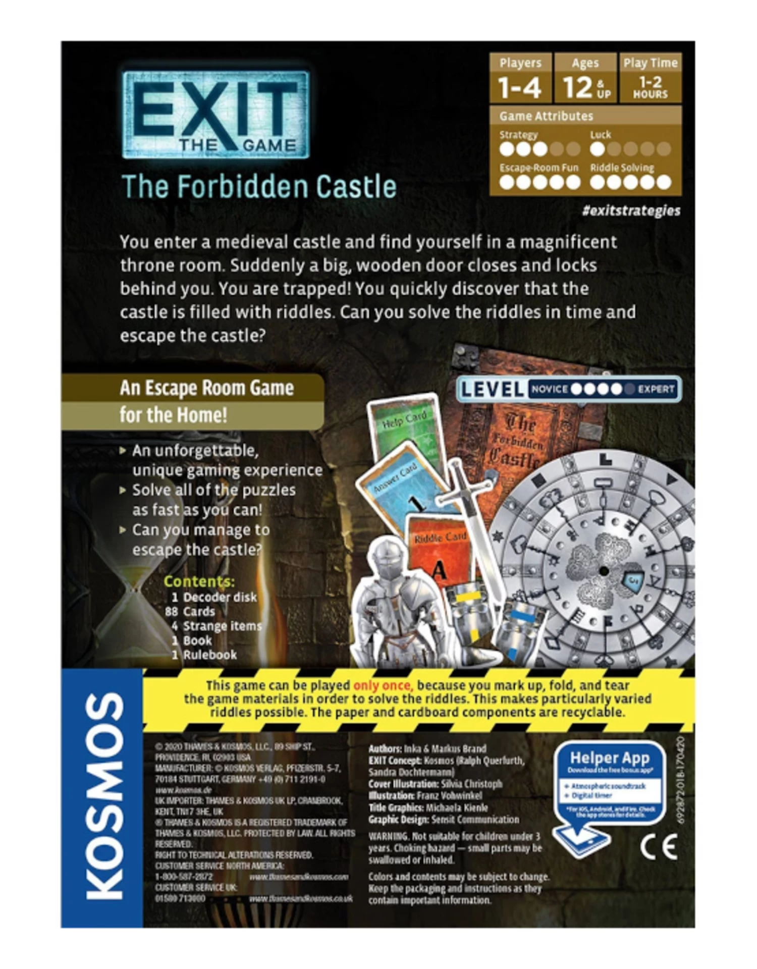 This game can be played only one time because you must markup, fold, and tear the game materials to solve the riddles and escape