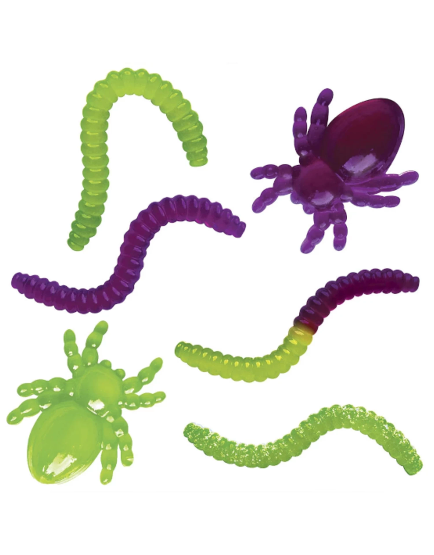 Gross new shapes, delicious new flavors! Mold your own delicious gummy worms and spiders using a natural gelatin-like ingredient called carrageenan that comes from seaweed. Flavor and sweeten your mixture with mixed berry and green apple flavors and then mold the gummy worms and spiders in the included mold. You can even add citric acid to make sour gummies! Learn about the scientific properties of natural polymers. Food ingredients included.