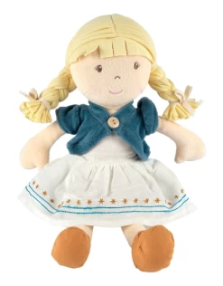 Features: Soft body rag doll with embroidered facial features 100% GOTS certified.