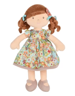 Features: Soft body rag doll with embroidered facial features and printed clothing.
