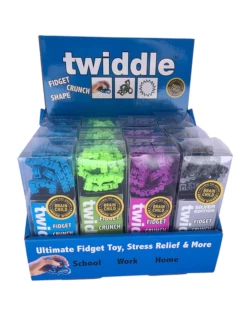 Twiddle is an excellent fidget toy that you can move around and make endless shapes! Fidget. Crunch. Shape. Unlimited Fun Stress Relief & More! Twiddle comes in different colour choices with safe interchangeable pieces that can be snapped together in endless ways to provide hours of fun where ever you are! Unlimited Shapes! Twiddle for Hours! Relieves Stress! The Ultimate Desk Toy! Patent Pending Links that pull apart and click together to create unlimited shapes or fidget for stress relief!