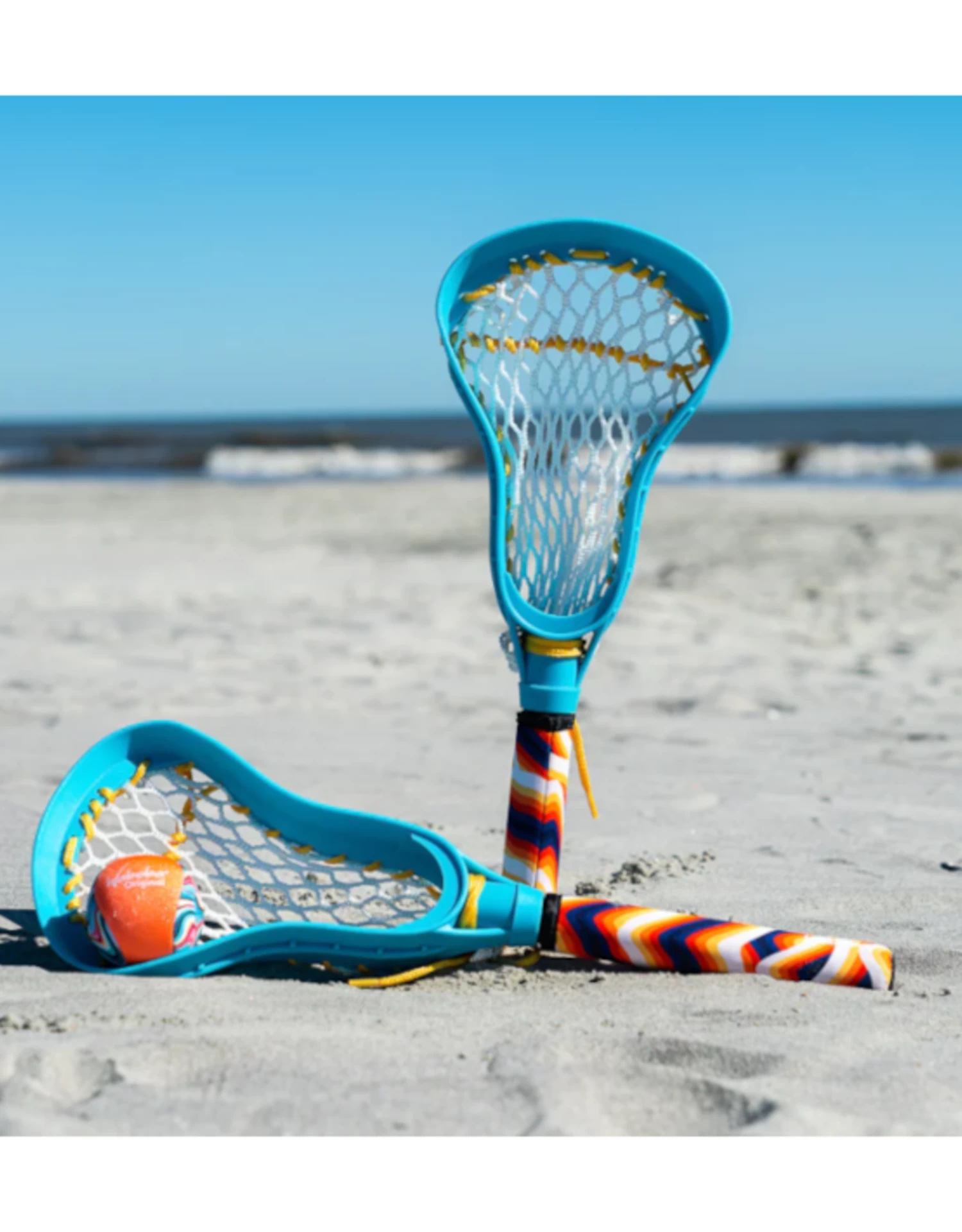 Take your lacrosse game to the water with the new mini Waboba lacrosse set! The new smaller size makes it easier to pack in your bag. Sticks feature a neoprene cover for a non-slip grip.