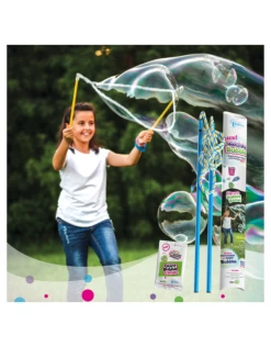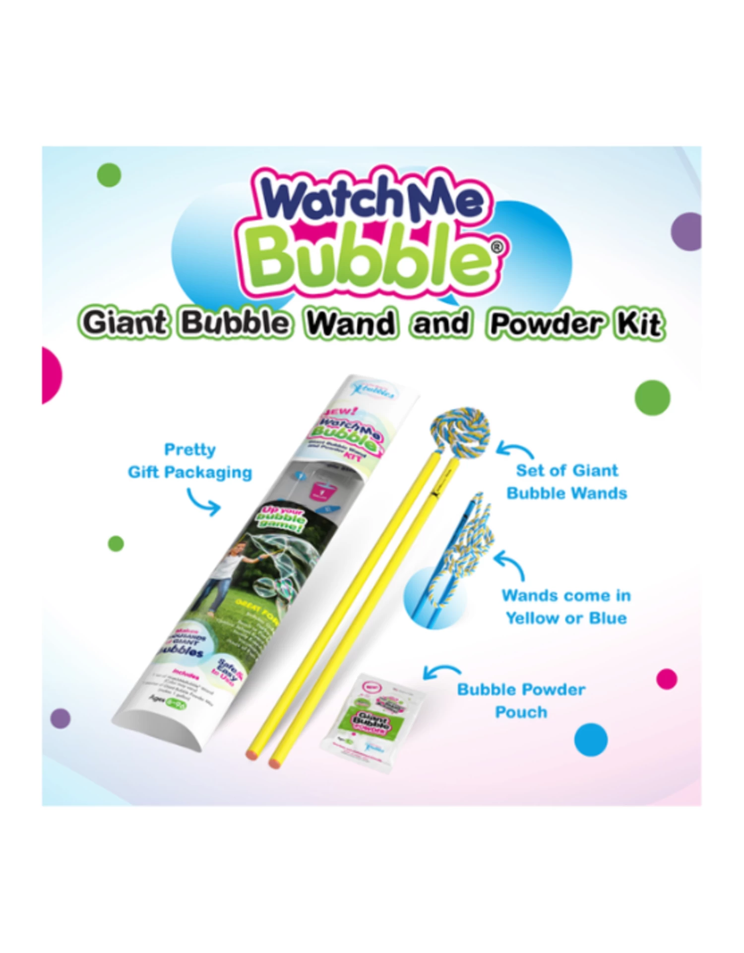 This set of wands are super-lightweight and easy to grab, even for little ones. Each colorful pair is connected with a pure cotton string that absorbs just the right amount of bubble solution (1 package included). Just dip the string in a bucket or container of WOWmazing Bubble Solution, lift the wands to the sky and you’ll think, “Whoa! Did I make that?”