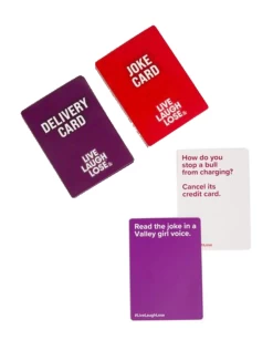 Get ready for Live Laugh Lose, the adult party game where you compete to make your friends laugh using only the world’s corniest jokes. Delivery cards get you to tell bad jokes with funny deliveries. For example, you may have to read the following joke in a Siri voice: “The person who invented knock-knock jokes should get a no-bell prize.” Your team scores if you get the opposing team to laugh! Bad jokes have never been funnier.