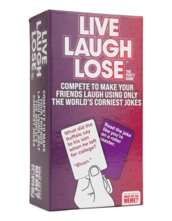 Get ready for Live Laugh Lose, the adult party game where you compete to make your friends laugh using only the world’s corniest jokes. Delivery cards get you to tell bad jokes with funny deliveries. For example, you may have to read the following joke in a Siri voice: “The person who invented knock-knock jokes should get a no-bell prize.” Your team scores if you get the opposing team to laugh! Bad jokes have never been funnier.