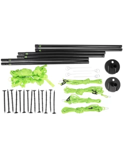 - 6 easy-assemble net poles with guide ropes and ground stakes