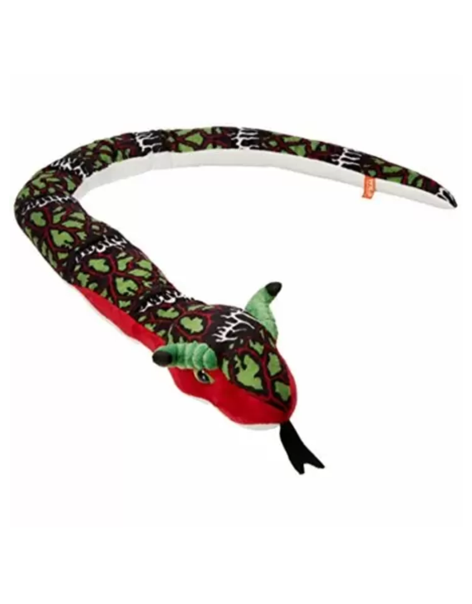 Being 54″ allow this Snake stuffed animal to easily double as a comfy animal pillow which can come in handy during long road trips or just lying around on the couch. Do not worry this Snake does not Bite! These reptilians get a bad rap; not all snakes are poisonous or a threat to humans in any way. If you observe from afar you will see the all the beauty snakes behold. This Snake pictured above has eye catching colors which have a tranquilizing quality to it that kids of all ages and serpent enthusiasts cannot ignore. Crafted with the finest materials; allows this large plush to overcome numerous hours of fun and imaginative play. Giant teddy bears get all the loving; other large stuffed animals want to be loved as well. Consider taking home this soft, cuddly, and oh so affectionate Dragon bone plush.