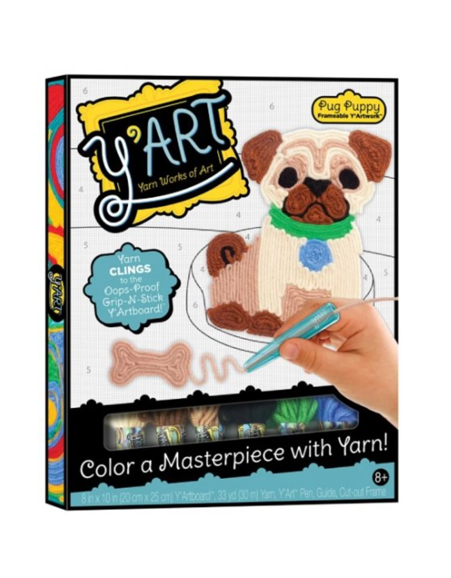 Welcome to the world of Y’Artâ„¢, where colouring meets craft! Thread the Y’Artâ„¢ pen and colour in the numbered areas—yarn magically clings to the OOPS-Proof Grip-N-Stick Y’Art board as you swirl, twirl, and zig-zag to customize each design with textures and patterns. Each kit comes with everything you need to create and display your own unique 8″ x 10″ work of colourful and textured textile art that’s unlike anything you’ve ever seen before!