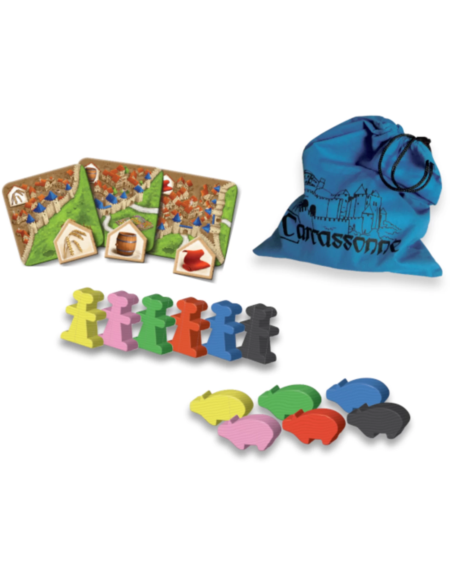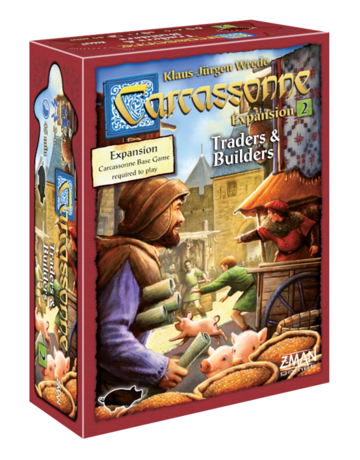 Traders & Builders adds new features and opening even more ways to outwit your opponents in Carcassonne. With the new builder follower, you can speed up construction by placing another tile immediately after you add a Land tile to a road or city that your builder occupies. Further, the pig followers and Goods tokens give you more ways to score points.