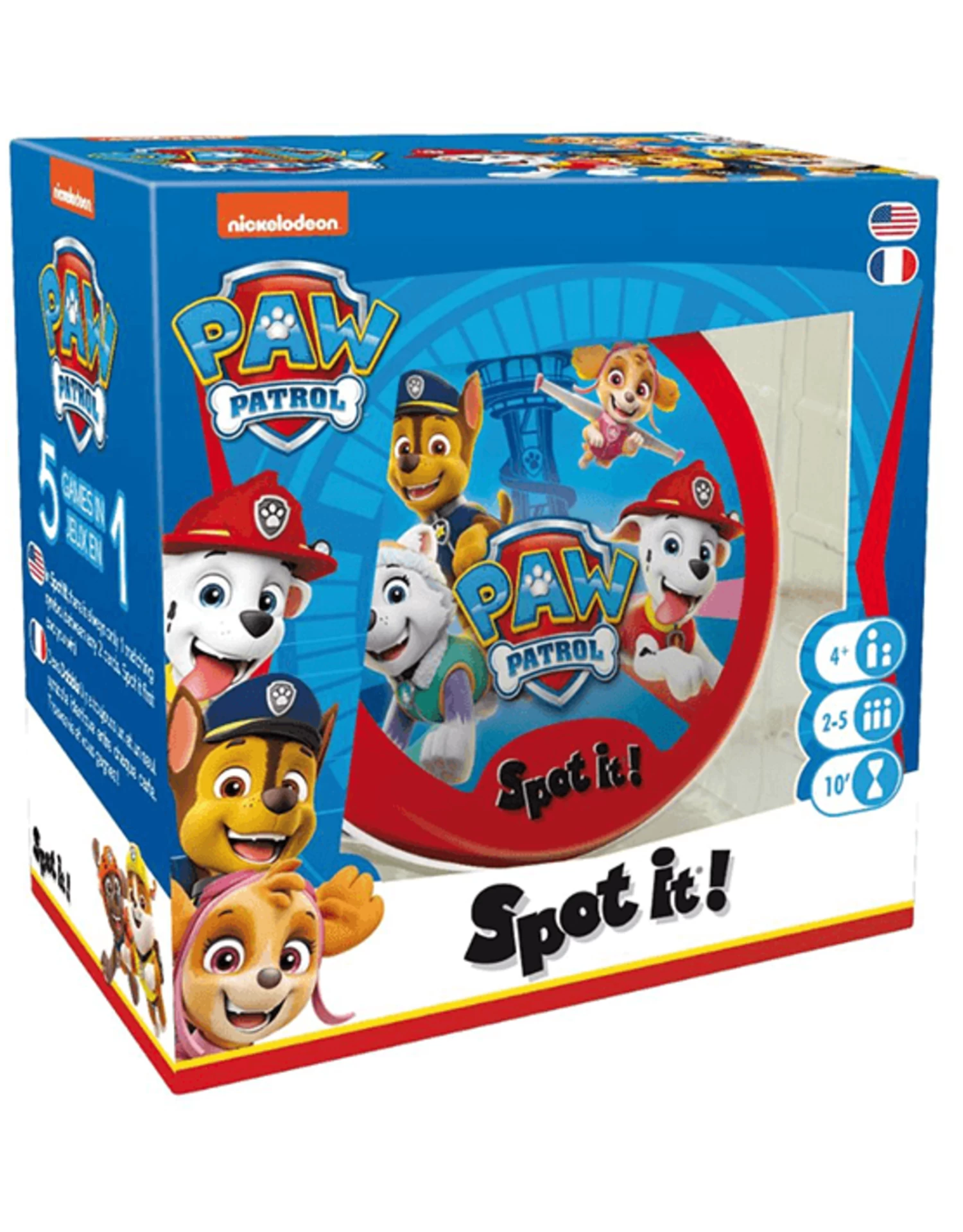 The beloved search-and-rescue dogs of the hit animated series join the Spot It fun! This version of Spot It! combines different characters from Paw Patrol animation with one of the most emblematic family games. Players try to spot the single matching symbol between 2 cards in a playful battle of speedy observation, featuring some of the most iconic characters: Marshall, Chase, Ryder, Skye and more. Will you be the first to spot it in the addictive game of speedy observation?